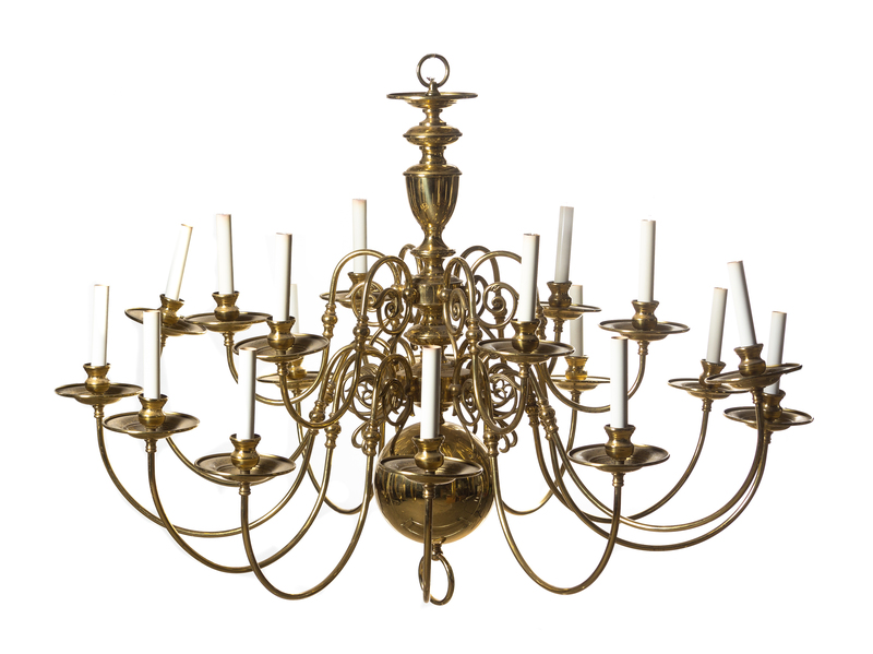 A Dutch Baroque Style Brass Eighteen-Light Chandelier,