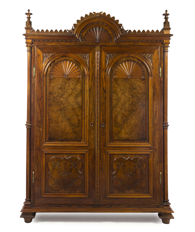 A Continental Gothic Revival Rosewood Armoire,