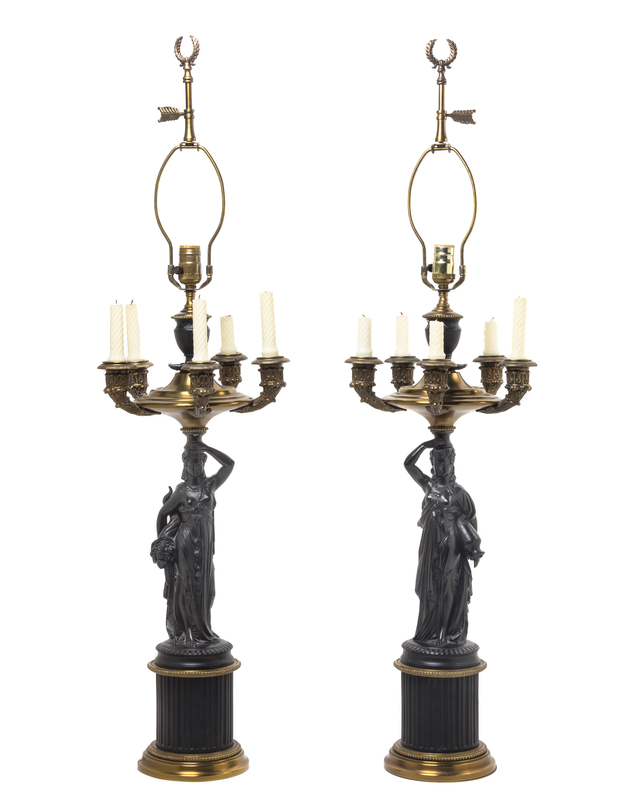 A Pair of Neoclassical Figural Table Lamps,
