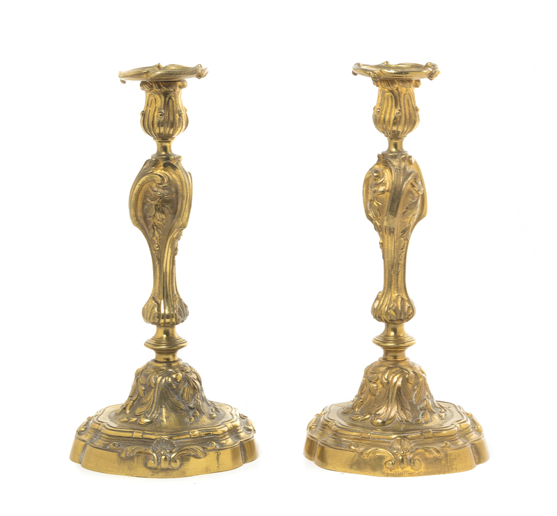A Pair of Louis XV Style Gilt Bronze Candlesticks,