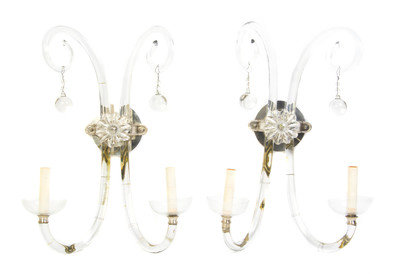 A Pair of Continental Cut Glass Two-Light Sconces,