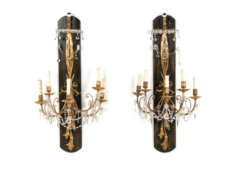 A Pair of Neoclassical Gilt Bronze Five-Light Sconces,