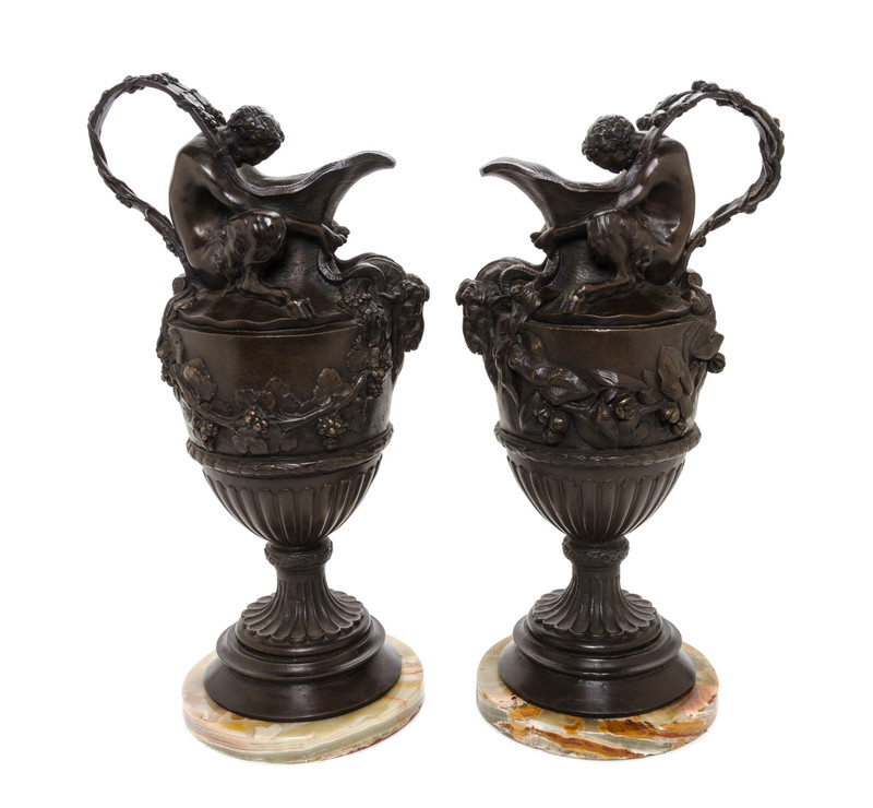 A Pair of Continental Bronze Ewers,
