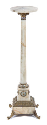 A Continental Champleve Decorated and Gilt Bronze Mounted Onyx Pedestal,