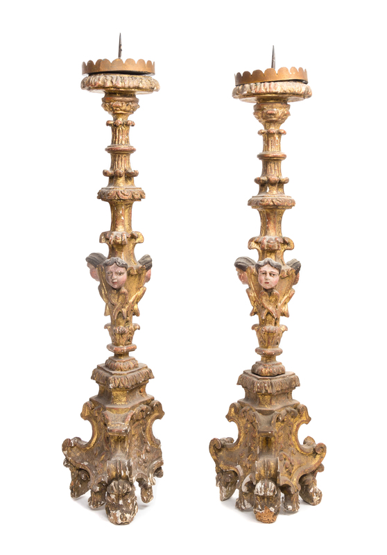 A Pair of Italian Baroque Style Giltwood Pricket Sticks,