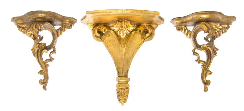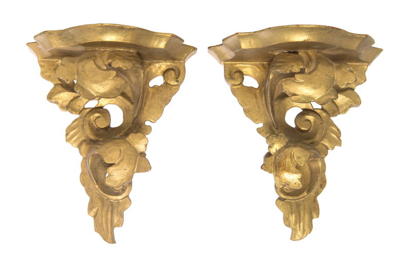 each having a shaped shelf over a foliate carved support, together with an associated example.