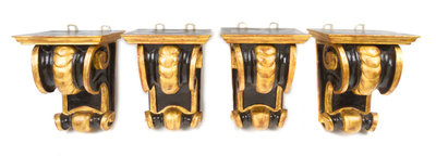 Four Continental Ebonized and Parcel Gilt Wall Brackets,