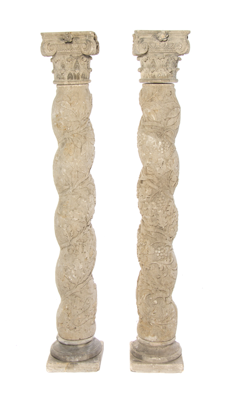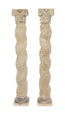 A Pair of Solomonic Cast Stone Columns,