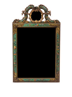 having pierce carved scrolling crests over the vertical rectangular plate.