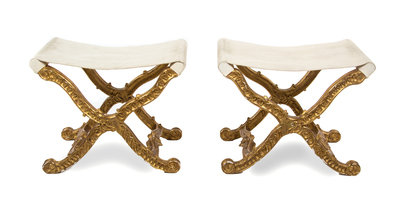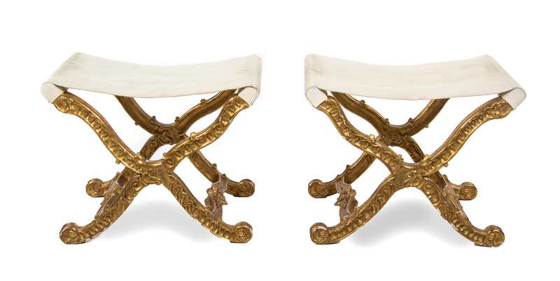 A Pair of Italian Rococo Style Giltwood Tabourets,