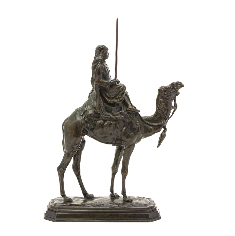 Dromadaire monte par un Arabe, depicting an Arab man on a camel, signed to base.