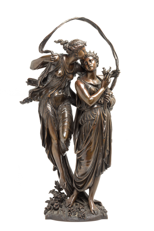 Demeter and Nymph, 1867, signed Dumaige and dated at the base.