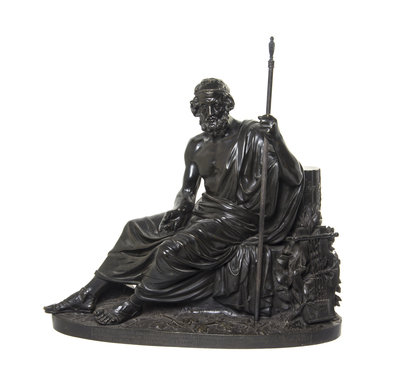 depicting a seated Greek philosopher and inscribed with an excerpt from The Blind Man by Andre Chenier.
