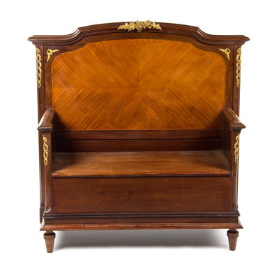 A Louis XV Style Gilt Bronze Mounted Mahogany Hall Bench,