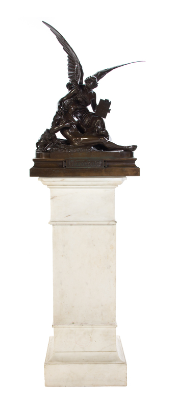 L'Immortalite, with Thiebaut Freres foundry seal, raised on an associated marble pedestal.