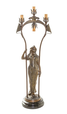 An Art Nouveau Cast Metal Figural Four-Light Lamp,