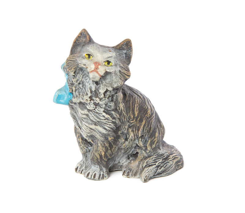 cast in the form of a seated cat.