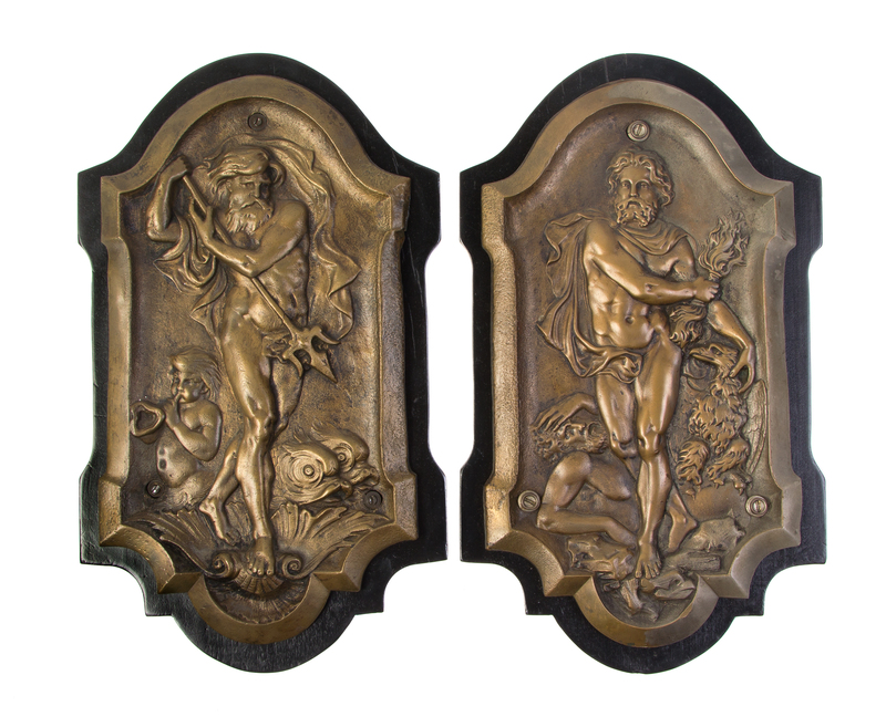 the first depicting Zeus, the other Poseidon, set on wood panels.