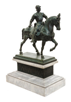 depicting the Venetian monument to Bartolomeo Colleoni of Bergamo, raised on a stepped marble base.