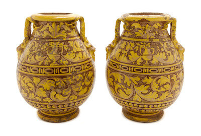 A Pair of Glazed Terracotta Urns,