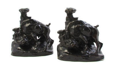 A Pair of American Bronze Bookends,