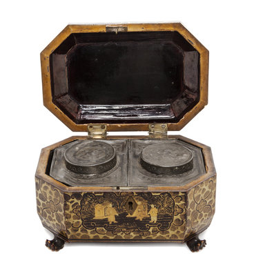 A Regency Lacquered Tea Caddy,