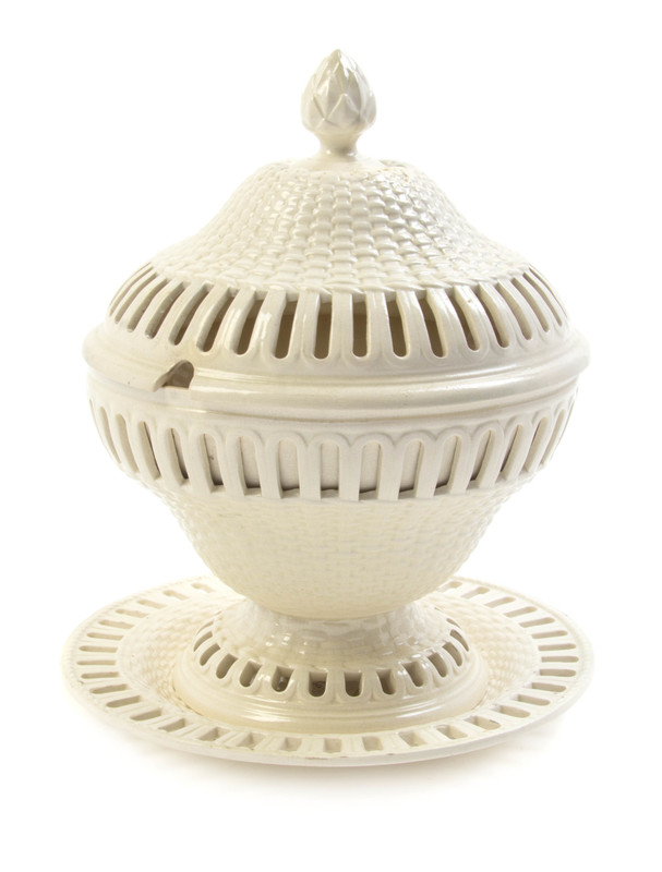 An English Creamware Reticulated Tureen and Underplate,