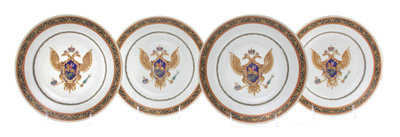 Four Chinese Export Porcelain Armorial Plates,