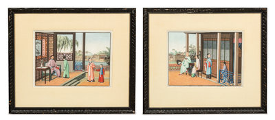 A Pair of Chinese Export Watercolor Paintings,