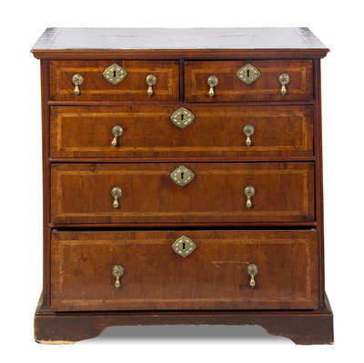A Charles II Walnut Chest of Drawers,