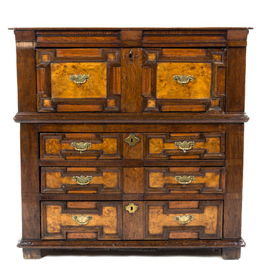 A Charles II Oak and Burlwood Chest of Drawers,