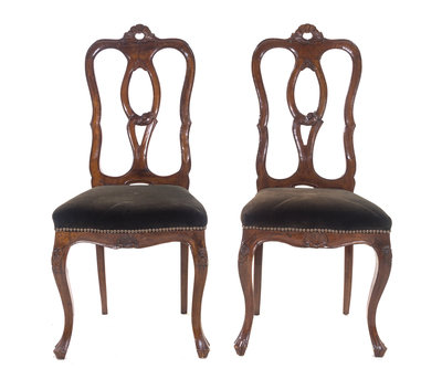 A Pair of English Walnut Side Chairs,