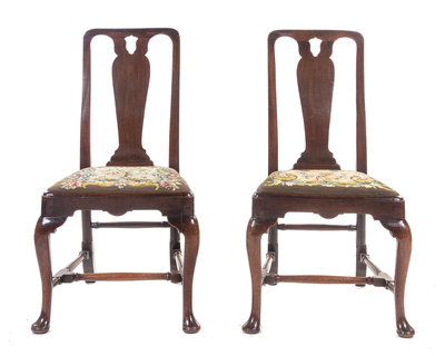 A Pair of Queen Anne Walnut Side Chairs,
