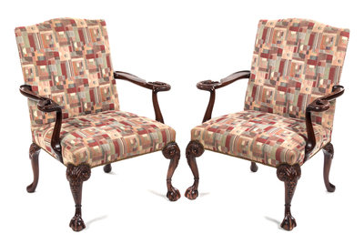 A Pair of Chippendale Style Mahogany Library Chairs,