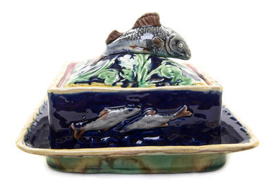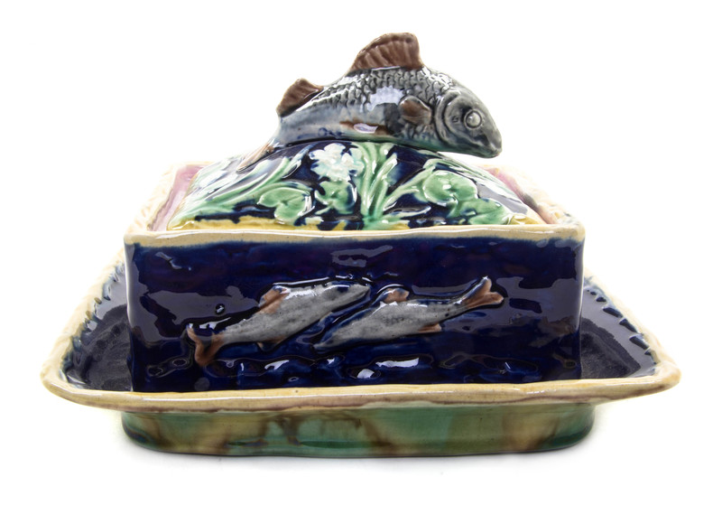A Majolica Butter Dish and Cover,