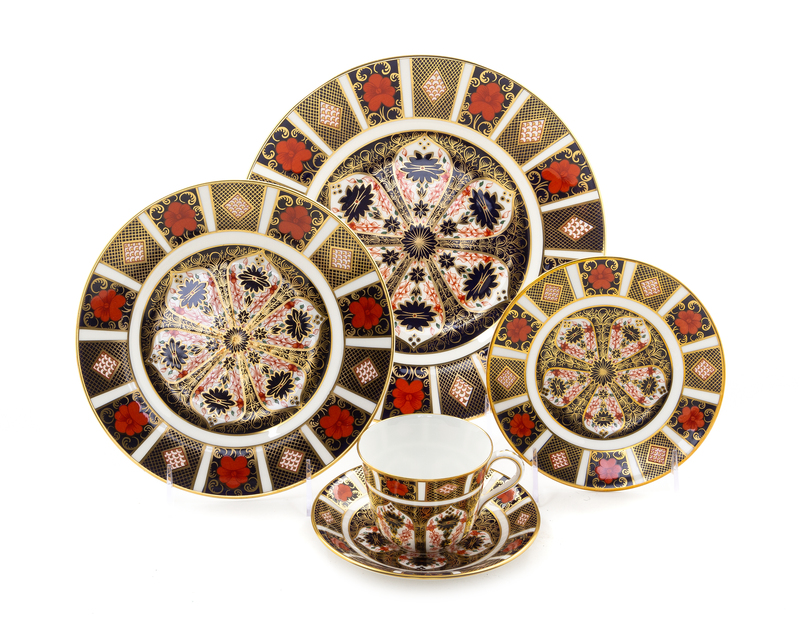 in the Imari pattern, comprising dinner plates, salad plates, bread plates, teacups and saucers.