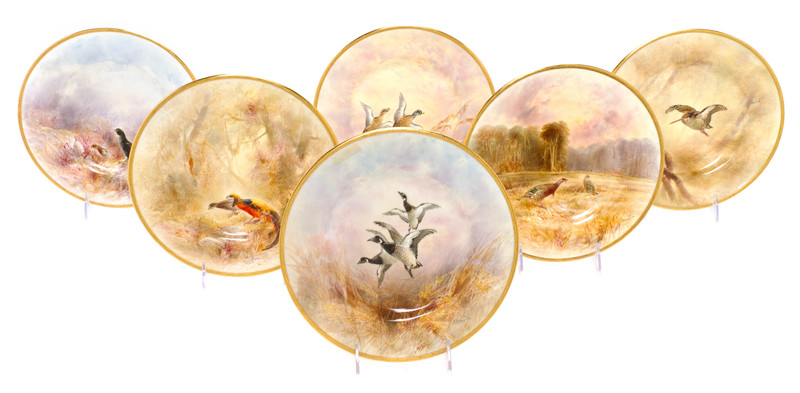 each having game bird decoration, nine signed J. Birbeck Sen.