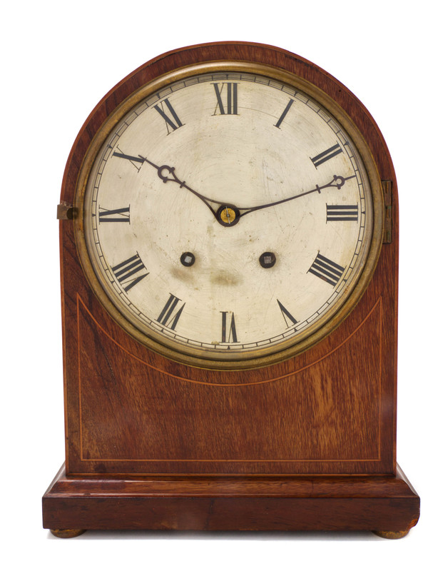 having a domed case with inlaid stringing, the dial with Roman numerals, having Winterhalder and Hofmeier time and strike works.