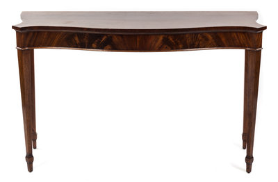 having a serpentine front top over a plain frieze, raised on square tapering legs ending in spade feet.