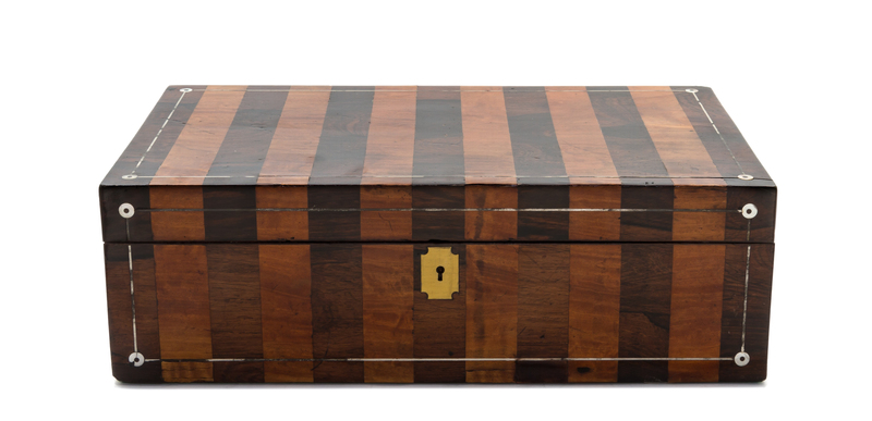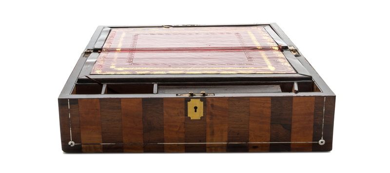 A Regency Rosewood and Satinwood Mother-of-Pearl Inlaid Lap Desk,