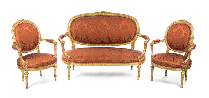 A Louis XVI Style Giltwood Parlor Suite,