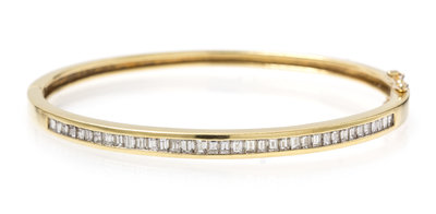 An 18 Karat Yellow Gold and Diamond Hinged Bangle Bracelet,
