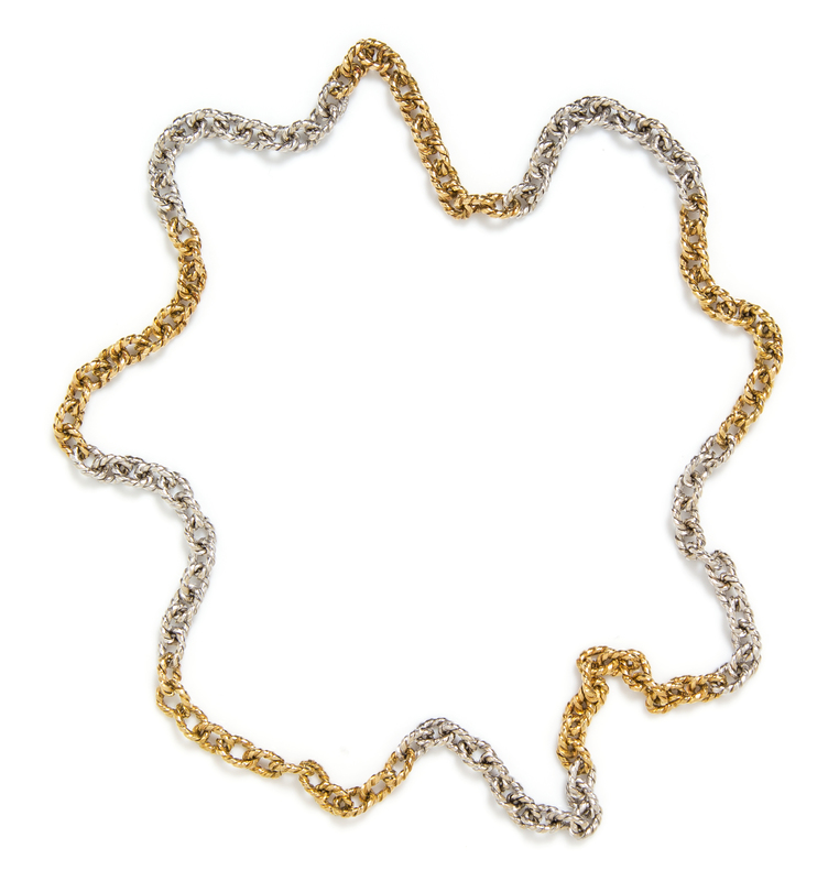 An 18 Karat Two Tone Gold Fancy Link Necklace,
