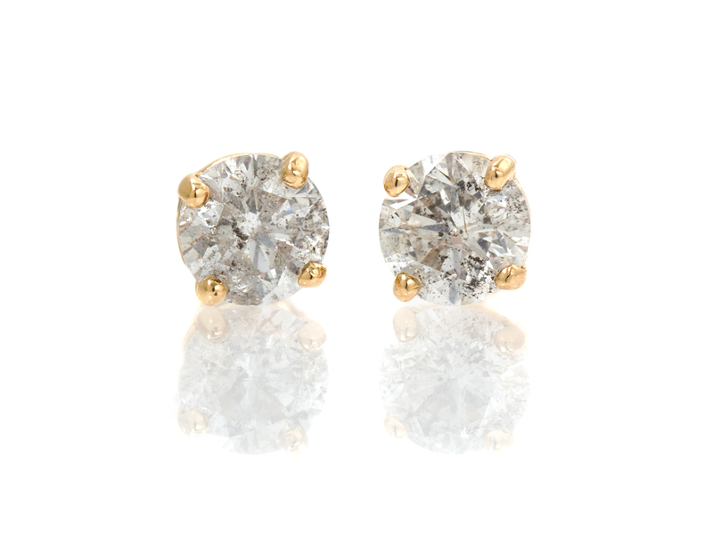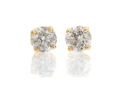 A Pair of 14 Karat Yellow Gold and Diamond Stud Earrings,