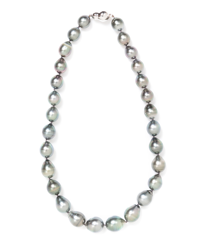 A 14 Karat White Gold and Graduated Cultured Tahitian Pearl Necklace,