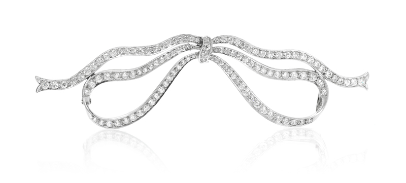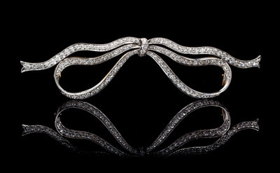An Edwardian Platinum Topped Gold and Diamond Bow Brooch,