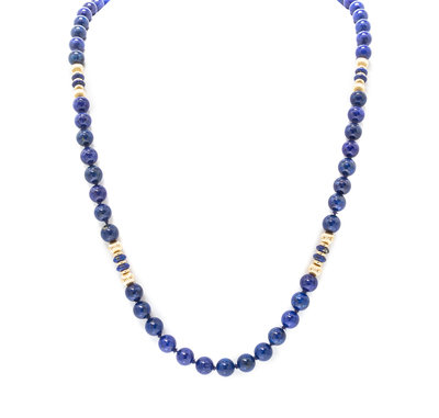A 14 Karat Yellow Gold, Lapis Lazuli and Gold Bead Necklace,