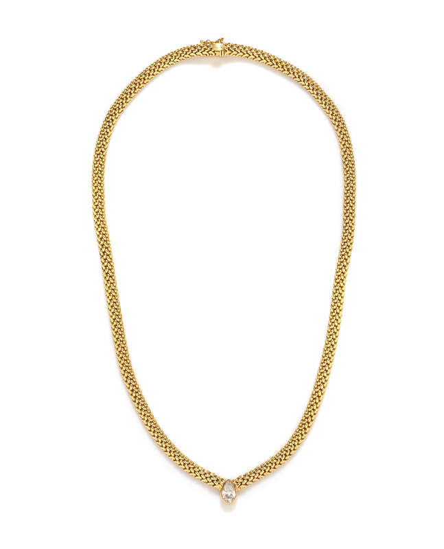 A 14 Karat Yellow Gold and Diamond Necklace,