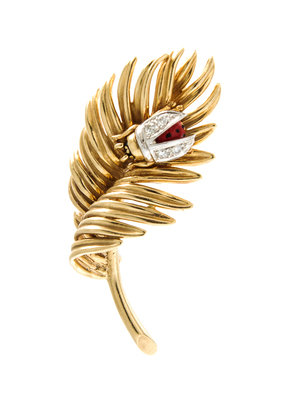 A 14 Karat Gold, Diamond and Enamel Ladybug and Leaf Motif Brooch, Dankner,
