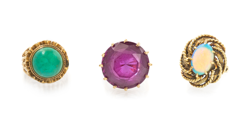 A Collection of Yellow Gold, Amethyst, Turquoise and Opal Jewelry,